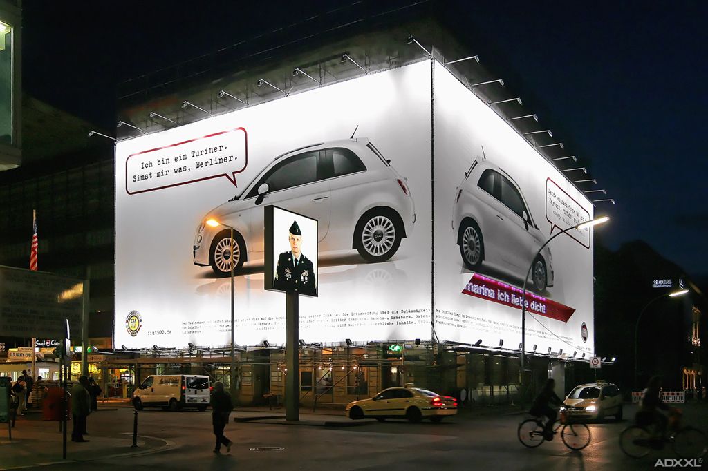 This sensational outdoor campaign in the very heart of Berlin was created by Fiat together with the communication experts Carat Wiesbaden and the agency Magic Touch of Hamburg.