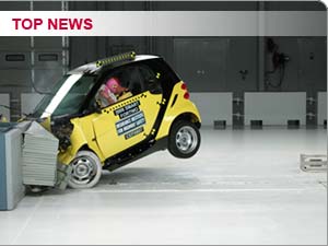 First Institute crash tests of Smart car: diminutive two-seater earns top ratings for protecting people in front & side crashes
