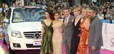 Berlin Germany May 28, 2008; The four leading actresses Kristin Davis, Sarah Jessica Parker, Cynthia Nixon and Kim Cattrall (left to right) as well as the producers Michael Patrick King (center) and John Melfi (right) with the all-new Mercedes-Benz GLK at the movie premiere of the highly anticipated motion picture “Sex and the City” at the Sony Center Berlin. May, 15th 2008, Berlin.
