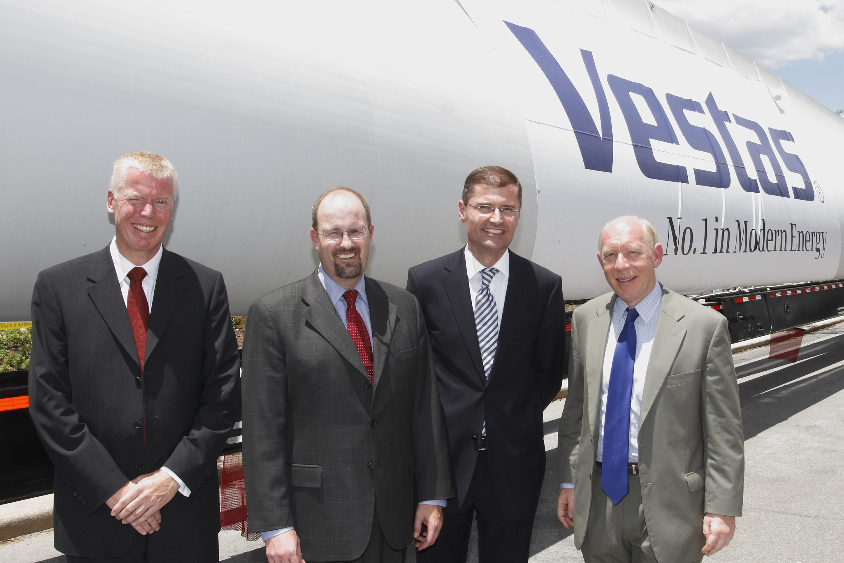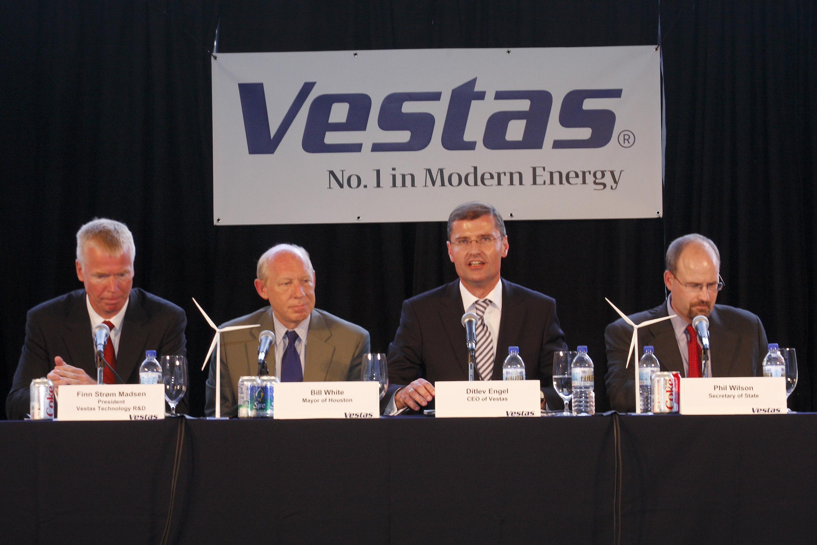 ![]() (Left to right) Finn Strøm Madsen, President Vestas Technology R&D; Bill White, Mayor of Houston; Ditlev Engel, President and CEO of Vestas; Phil Wilson, Texas Secretary of State. |