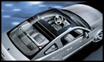 To ensure a comfortable driving experience, the panoramic roof is made of tinted privacy glass which reduces both vehicle cool-down time and infrared energy. Measuring more than one square meter in total size, the glass roof consists of two layers of glass with a layer of transparent vinyl in between.