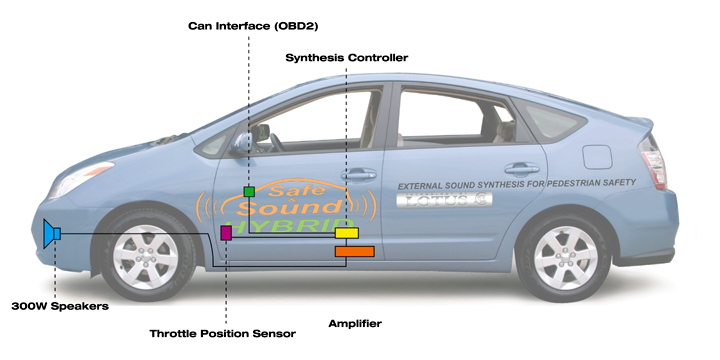The Lotus ‘Safe & Sound’ Hybrid technology demonstrator uses a standard Toyota Prius, one of the highest volume and most advanced hybrid vehicles to demonstrate the sound synthesis application and compensate for the lack of engine noise emitted by the vehicle when running on an electric motor. What has resulted is the same environmentally conscious hybrid vehicle, without the potential risk to pedestrians and cyclists.