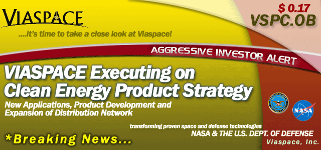 About VIASPACE: Founded in 1998 with the objective of transforming proven space and defense technologies from NASA and the Department of Defense into hardware and software solutions that solve today's complex problems, VIASPACE benefits from important patent and software licenses from Caltech, which manages NASA's Jet Propulsion Laboratory.