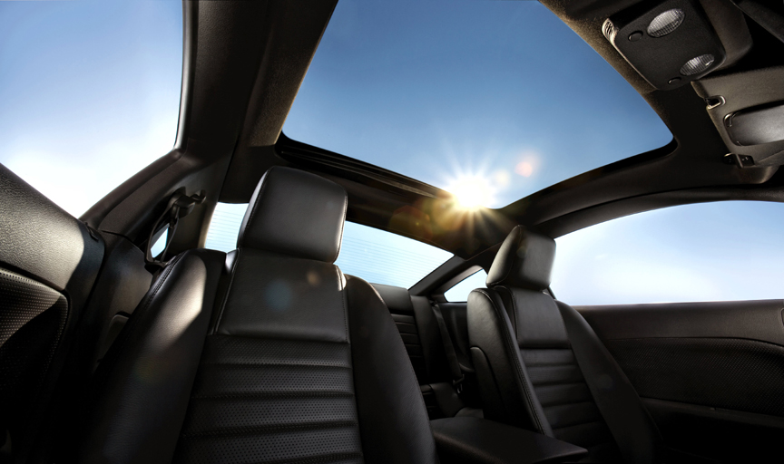 • Roof options: Segment-first, factory-installed glass roof option now available on both the V-6 and GT models.