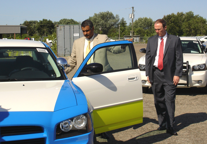AUBURN HILLS, MI - September 3, 2008: A Kuwaiti delegation visited the U.S. to inspect and approve the upfitting of 150 Dodge Charger police vehicles purchased by the Ministry of Interior. Selection of the 2008 Dodge Chargers was a natural choice; Charger is the number one volume vehicle for Chrysler LLC in the Middle East.