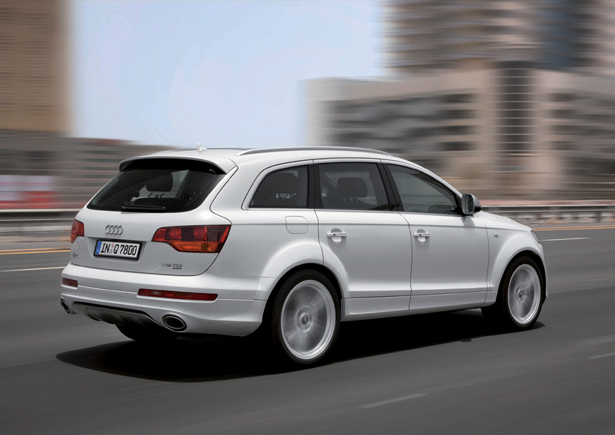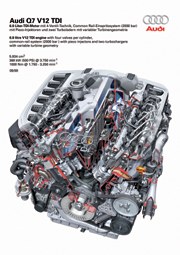 INGOLSTADT, Germany - September 8, 2008: For two decades Audi has driven forward the advancement of diesel technology – from the very top. Now the brand with the four rings is presenting another world first: the first V12 TDI in a passenger vehicle. The diesel, which generates an output of 368 kW (500 hp) and 1,000 Nm of torque (737.56 lb-ft) from a capacity of six liters, gives the new Audi Q7 V12 TDI quattro the performance of a sports car. It catapults from zero to 100 km/h (62.14 mph) in only 5.5 seconds and has an electronically capped top speed of 250 km/h (155.34 mph).