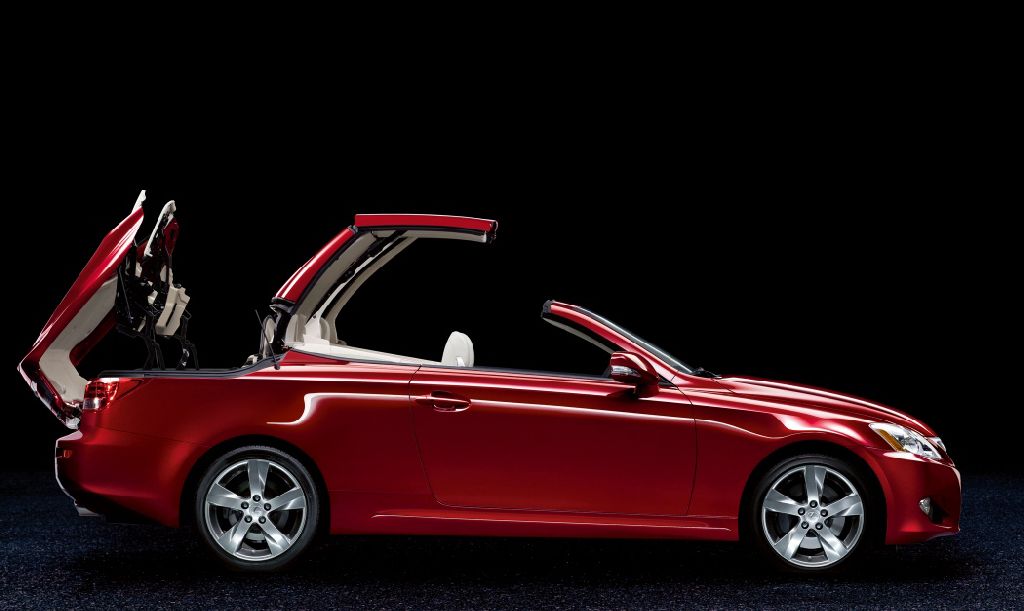 Only the bonnet, headlamps, door handles and mirrors are shared with the IS saloon, all other body panels have been redesigned to ensure they harmonise perfectly with the three-part folding roof.