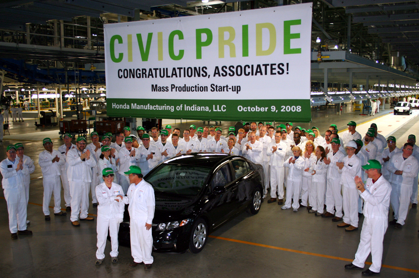 a second shift in 2009. The Honda Civic sedan being built in Indiana features