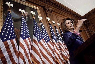 WASHINGTON DC November 12, 2008; The AP reported that House Speaker Nancy Pelosi wants Congress to support a financial bailout for the troubled U.S. auto industry, which is suffering under the weight of poor sales, tight credit and a sputtering economy.