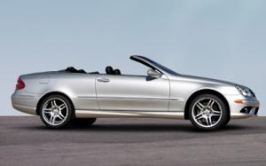 But all of that makes the CLK, in coupe or cabrio form, an excellent long-distance touring machine. Grand touring, really, in the original meaning of that oft-misused term. The cabrio's insulated, multi-layer top keeps the elements at bay when necessary, and with one-touch, no manual latching operation, it goes up or down quickly and easily. Yes, there is a trunk size penalty, but two carry-on bags will fit even with the top down. The V8 models have the sport suspension as standard equipment, but it's more "sport-touring" in calibration, firm and precise but still quite civilized and completely appropriate for the car's character.