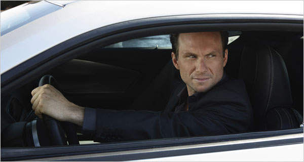 Christian Slater played an ordinary middle-class father who is also a secret agent, complete with suitable G.M. cars for each personality, a Traverse sport utility vehicle and a Camaro convertible.
