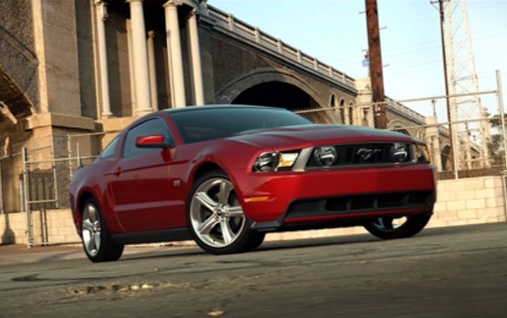 LOS ANGELES - November 18, 2008: Muscle goes modern for 2010 as the Ford Mustang, America's favorite muscle car for 45 years straight, hits the streets with a new exterior design; new world-class interior featuring well-crafted materials and updated technology; and a V-8 with even more horsepower and an even throatier signature Mustang exhaust sound.