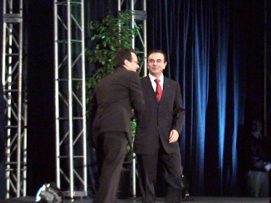 LOS ANGELES - November 19, 2008: Carlos Ghosn, President and CEO of Nissan Motor Co., Ltd. and Renault S.A., kicked off the Los Angeles Auto Show by delivering the keynote address today. Ghosn joined Nissan as its chief operating officer in June 1999, became president in June 2000 and was named chief executive officer in June 2001. In May 2005, Ghosn was named president and chief executive officer of Renault S.A. in addition to his current responsibilities at Nissan. As head of the Renault-Nissan Alliance, Ghosn is responsible for two separate companies with combined annual global sales of 6.16 million vehicles and 9.1 percent global market share in calendar year 2007.