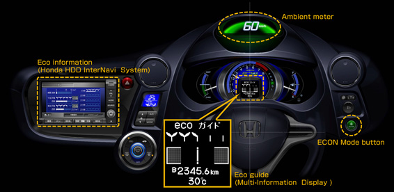 Furthermore, for the Japan-market version of the Insight equipped with the optional Honda HDD InterNavi System, the Ecological Drive Assist System has an added function that enables drivers to receive advice on driving practices that enhance fuel economy.