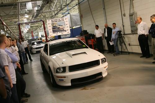 Detroit, MI. December 21, 2008: The first of the highly anticipated 40th Anniversary Mustang Cobra Jets (FR500CJ) rolled off the assembly line today completing an eight-month migration from an idea to reality. Brian Wolfe, Director of Ford Racing Technology, presented the keys to the first Cobra Jet to Brent Hajek, owner of Hajek Motorsports, who will enter four of the new CJ’s at the 2009 Winternationals at Pomona, Calif. in February.