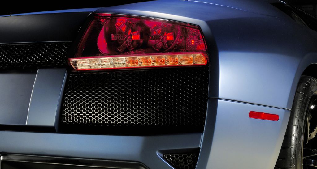 blue tone with a matt-luster finish. Dressed like this, the Murciélago and