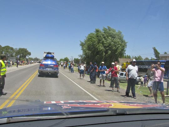 Connecting the special stage to our bivouac, we continue on highway 35 out of Santa Rosa, turning onto the narrower 154 towards Colonia Carolina. After the dusty back road spits out most of its attackers, we gather up and begin the journey to Puerto Madryd. We continuye on Highway 154 towards Rio Colorado, a right turn to the West on 22 for 30-040 km and then south on 251 towards General Conesa where we join Highway 3 at San Antonio Oueste. From there we will make our final 256 km to Puerto Madryd, our bivouac, and miraculously another night in a hotel instead of a sleeping bag. Perhaps we will have air conditioning and beer, as well as Internet access so I can share today’s events.