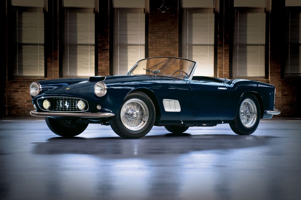 The car offered at the Amelia Island event, 1307 GT, is the twenty-third of the total fifty long wheelbase California Spyders and is unique among them for several desirable and distinctive features, including the unusual Superamerica-style front fender vents and an insert air intake on the hood. Delivered on March 27, 1959 to Prince Alvise Hercolani of Modena, its certificate of origin was issued by Ferrari on April 3, 1959.