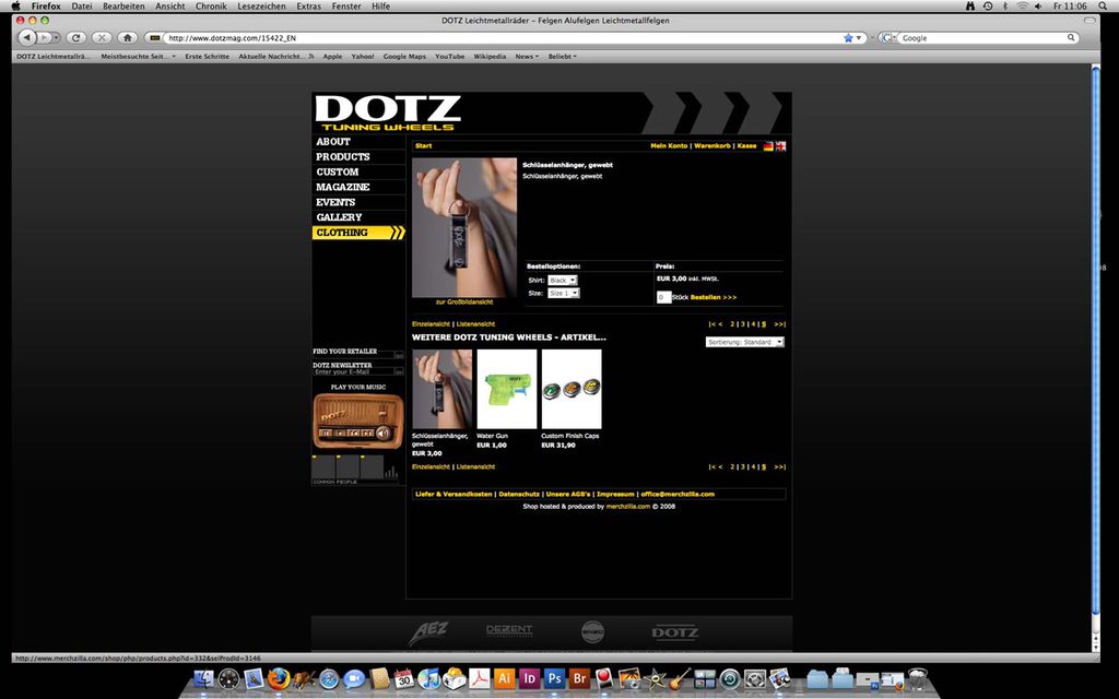 From the comfort of your sofa, you can order everything possible from the world of Dotz. From a huge clothing collection to a massive range of hubcaps, metal inlays, colored pinstripes or even the latest issue of Dotz mag – it only takes a click to get it delivered to you.