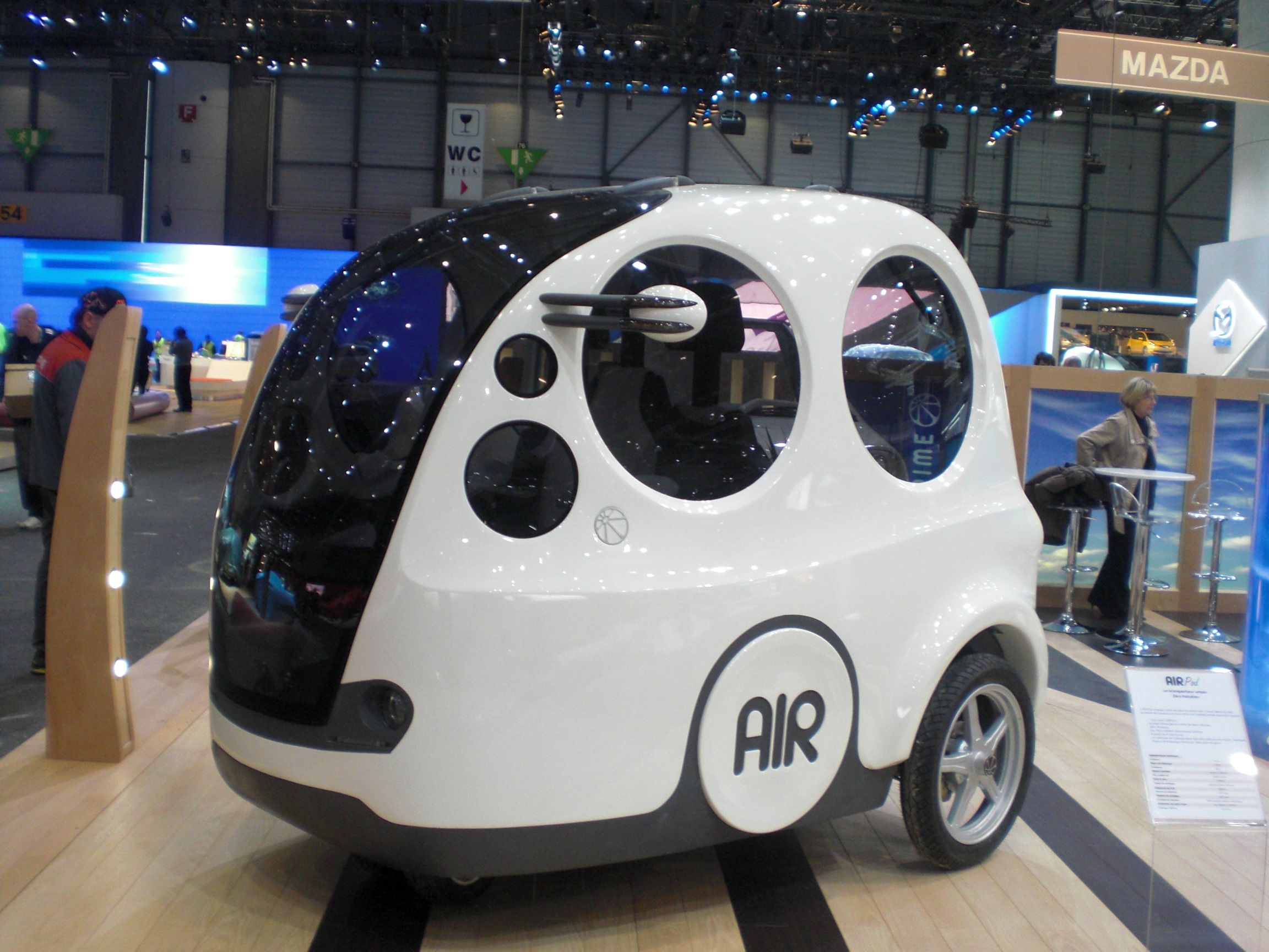 How? The clue’s in the name. The Moteur Development International (MDI) AIRPod runs on compressed air. It’s a tiny two-seater, with three wheels and a total weight of just 220kg – but it has a range of 180-220km, a top speed of about 40mph and it can be fully recharged in just 90 seconds – the time it takes to refill its carbon-fibre air tank.