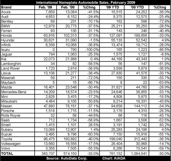 See below for a complete breakdown of February 2009 monthly and year-to-date sales by international nameplate.