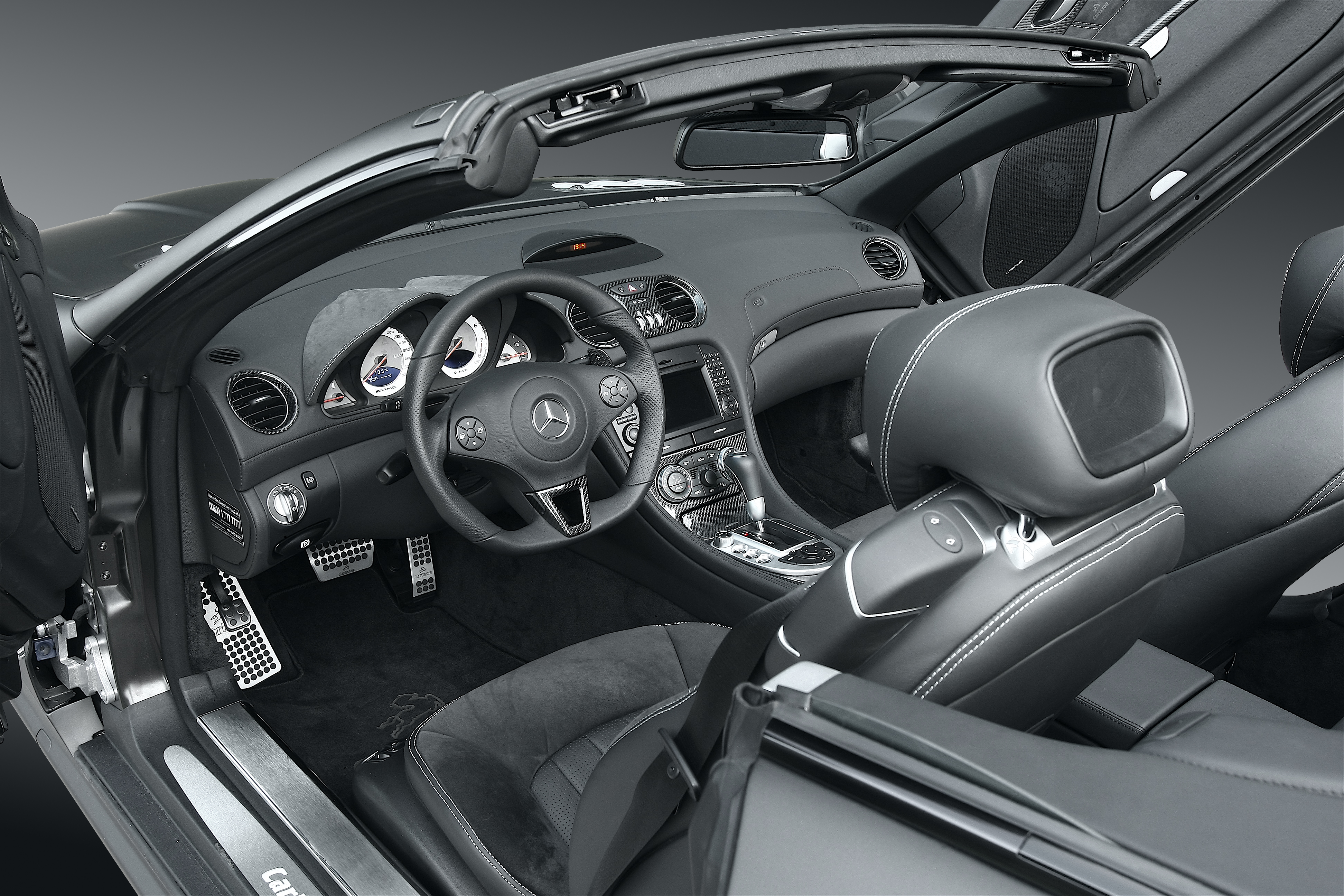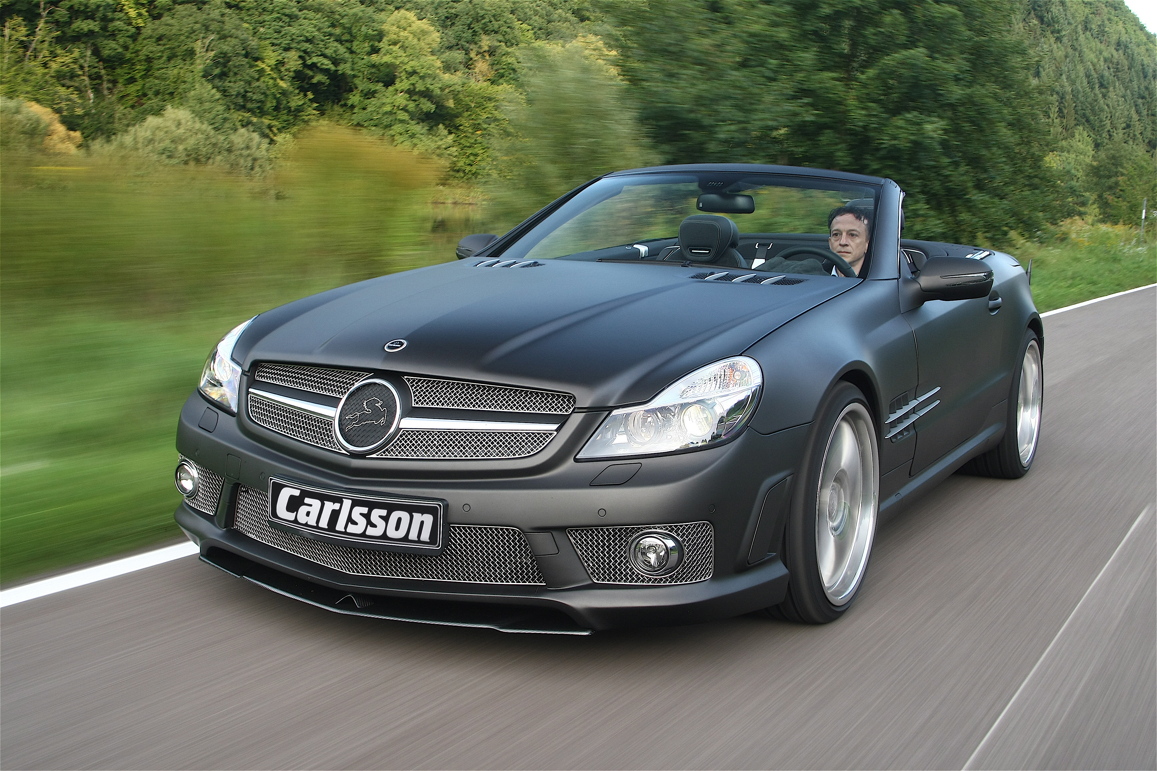 • Carlsson improves the eight-cylinder engine to the tune of 600 hp • Maximum torque increases to 520 lbs/ft. • Leather and carbon refinements elevate the standard Mercedes SL63 AMG • Special varnish five times less glossy than conventional matte colorsCarlsson, recognized as an auto manufacturer in its native Germany, uses its years of experience with Mercedes-Benz vehicles to invigorate the eight-cylinder with significantly more performance. Although the cubic capacity with 6,208 cc has not been changed, the refined engine delivers up to 600 hp instead of the standard 525 hp with the AMG. The maximum torque increases from 465 lbs/ft. at 5,200 rpm to 520 at 5,100 rpm. With Carlsson’s refinement, the sprint from zero to a sixty mph only takes 3.9 seconds and is therefore half a second faster than the AMG model. And, the acceleration is electronically limited to a more respectable 202 mph instead of 155 mph.