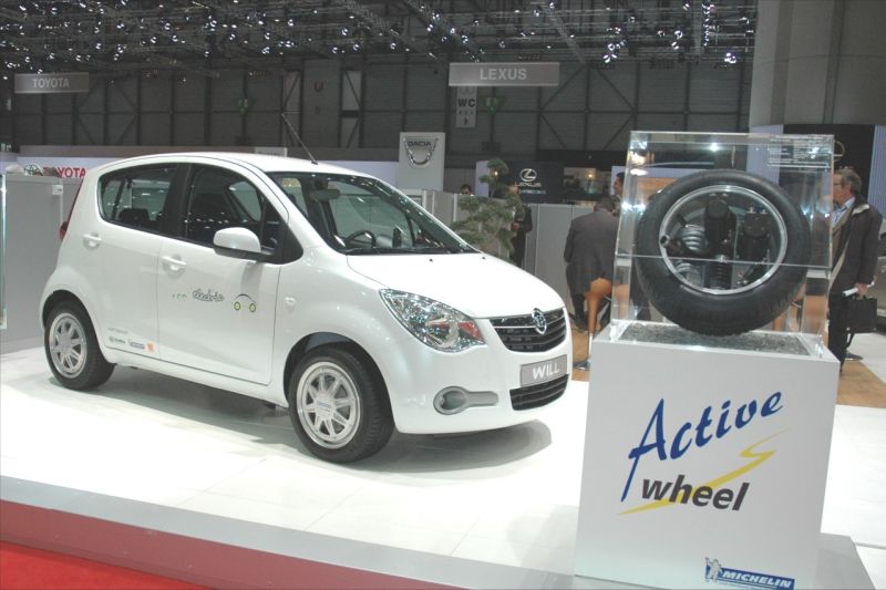 Inside the wheel there is a small electric motor, an electric suspension system and a brake disc. The Will has two Active Wheels, driving the front wheels, but a bigger car, or a performance-oriented vehicle could have four Active Wheels. French sports car maker Venturi is developing a coupe concept called the Volage, which will have four Active Wheels.