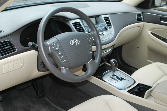 An attractive, functional instrument panel in front of the driver flows well into a stylish center stack with an inverted arch shape housing most of the easily understood and managed functions. A beautifully executed band of leather trim flows from one front door to the other, uninterrupted across the dash. The steering wheel-mounted controls are much less ambiguous than most, particularly the Germans. Many of the German makes seem to have just too much gratuitous technology. The Hyundai’s controls are all simple and unpretentious.