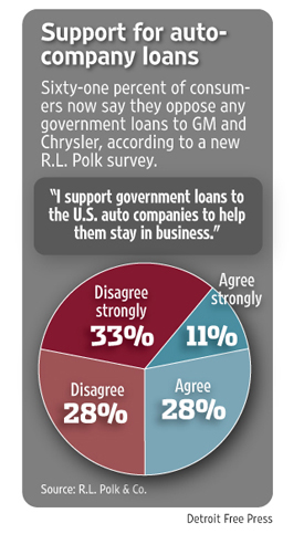 Lonnie Miller, a Polk analyst, said the data reveal an attitude of "it's a problem, but it's not a problem for taxpayers." GM and Chrysler expect a March 31 decision by the president's auto task force on their latest loan requests.
