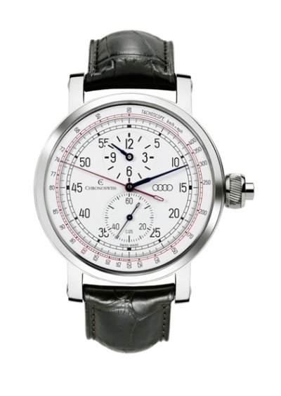 This exclusive chronograph was conceived by Audi Design; our development and production partner is Chronoswiss, the Munich-based watchmaker. Audi and Chronoswiss alike devote themselves to precision and flawless quality. Moreover, both companies boast rich legacies, yet also strive for innovative excellence and pioneering solutions.