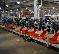Plant upgrades also included a special turbocharger installation and test line. After the turbos are added, each EcoBoost engine is turned on speeds between 60-600 RPM using an electric motor to simulate running conditions. Unique to the Cleveland site, this “cold test” checks for proper buildup of pressure on the turbo output side before the engine ever leaves the factory.