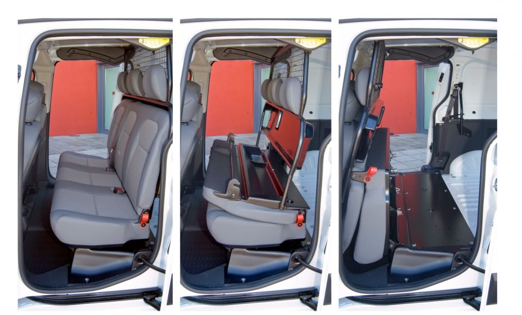 With the rear seat in use, the bulkhead separates the five-seat crew compartment from a 1,320mm long, 2.4cu.m capacity load compartment. If the Berlingo 725 L2 Crew Van is operated as a two-seater, catches are released on the rear seat to allow the seat back to be folded forward through approximately 180 degrees to a vertical position behind the front seats, with the seat base folding up against it. At the same time, the bulkhead, which is attached to the seat back, automatically slides forward on runners to lock into position behind the front seats. In this position, the bulkhead separates the driver and front passenger from the increased 3.35cu.m volume, 1,805mm long load compartment.