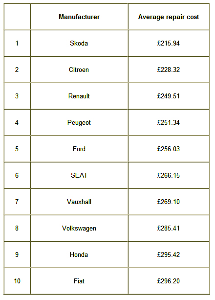 In comparison, Skoda, is the cheapest to repair, boasting an average yearly garage bill of £215.94. With the exception of Honda, the Czech manufacturer is joined by a clutch of popular European marques – Citroen, Renault, Peugeot, Ford, SEAT, Vauxhall, Volkswagen and Fiat - in the 10 least expensive brands to repair.