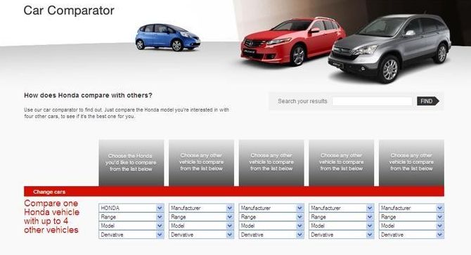 12 Year After The Auto Channel's 4 Car Comparagraph;Honda Launches New Car Comparator