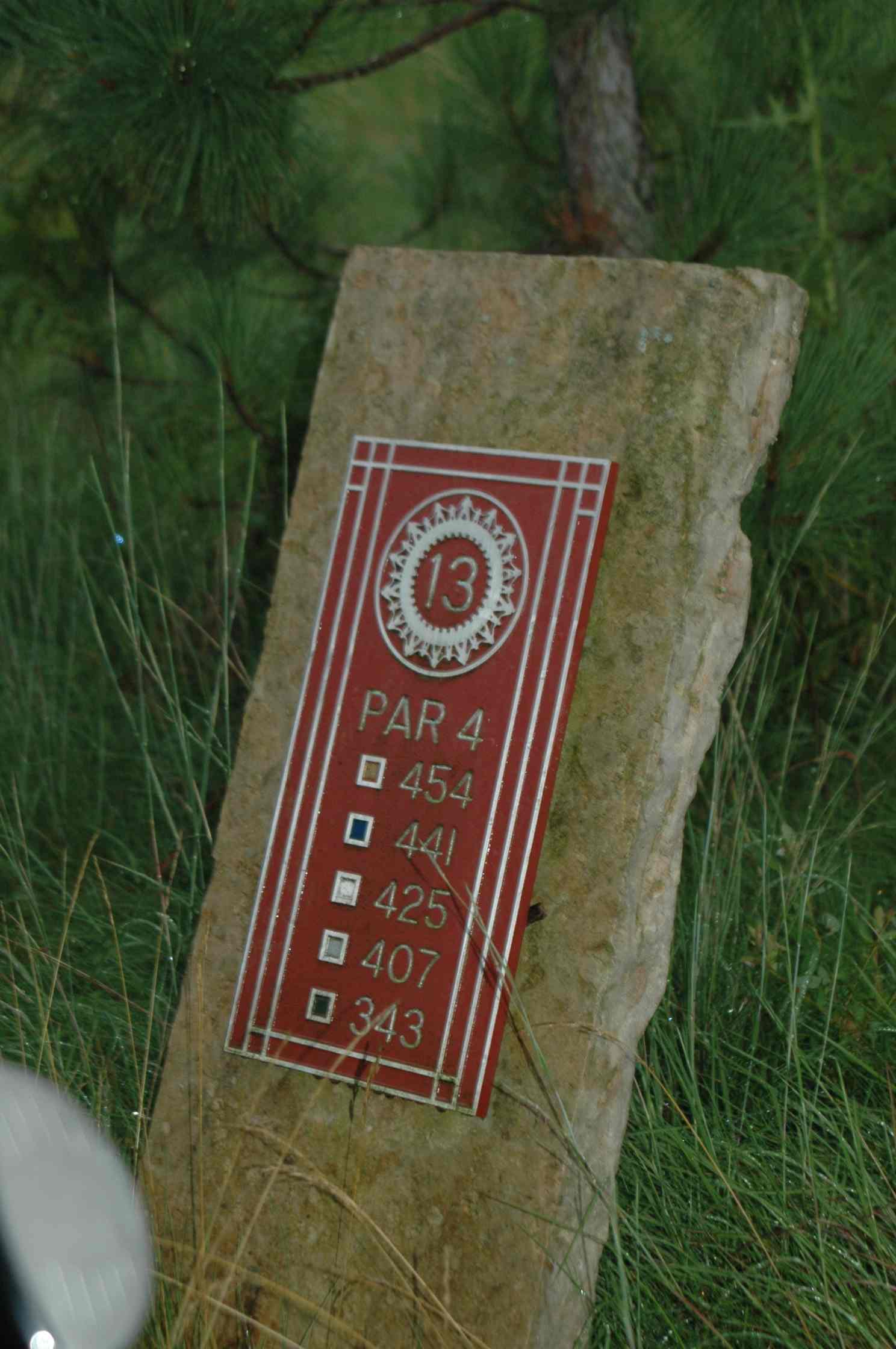 The #1 handicap hole is a big par 4, hole #13, 454 yards long from the tips and 425 from the white tees. Joe was playing from all the way back, of course. He always wants to par the toughest hole because he says if you can par that one you can par all the rest. Number 13 got him this time, though. You’ll really have to put your best two shots together just to get close to the green on this hole. (Joe bogied it. I’ll not reveal my dismal score.)
