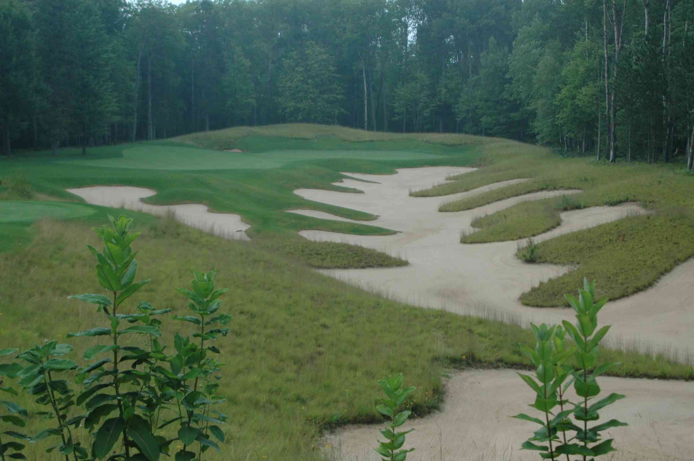 This course, as with most of the premium courses in northern Michigan, is carved out of pristine forests and wet lands. Undisturbed natural areas surround and crisscross the holes. The course meanders through 300 acres of woods so transits are lovely. Plenty of trouble is to be had by those whose balls stray from the fairway.