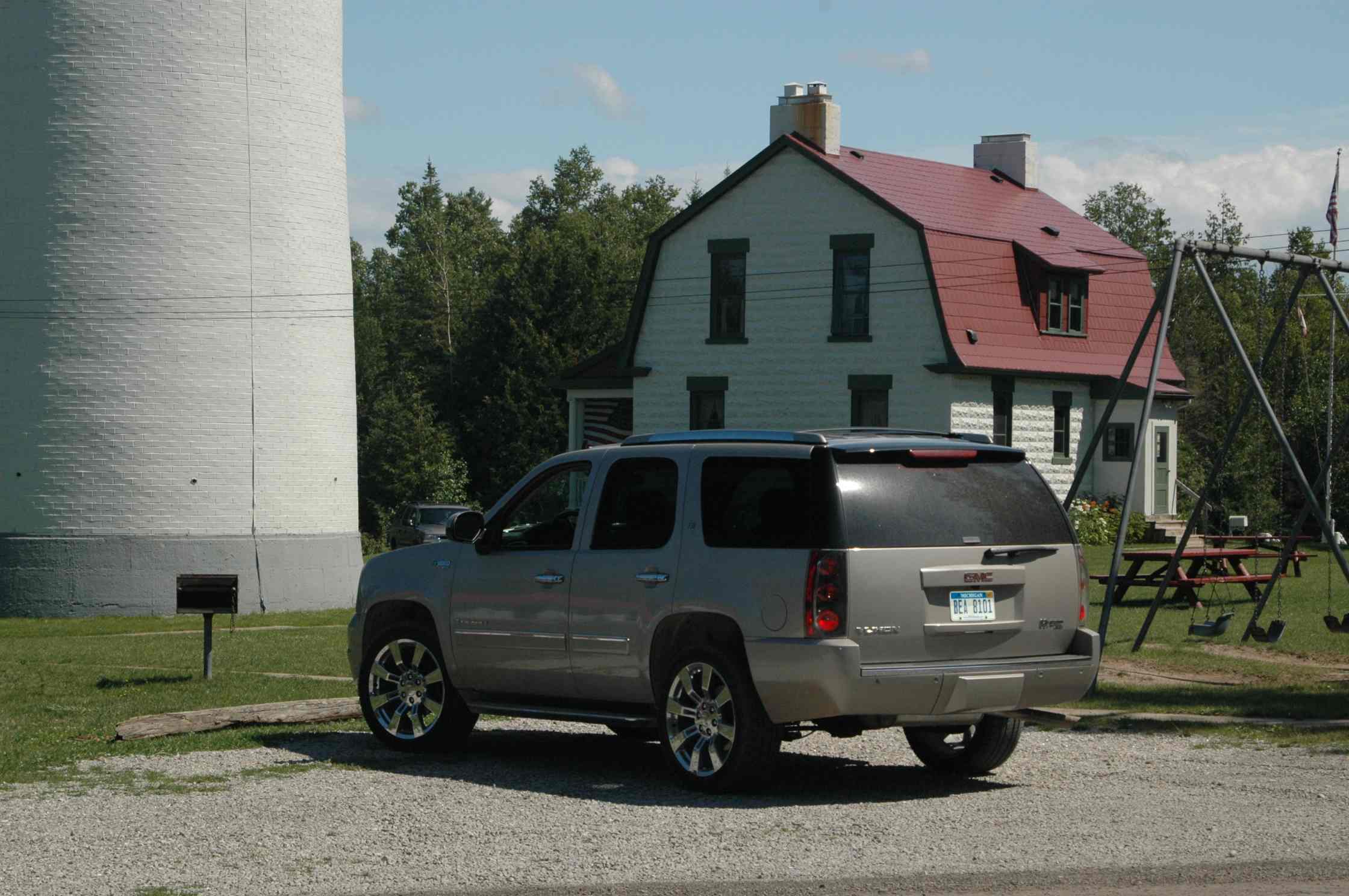 Our Denali is a great open road vehicle, quiet and smooth. We managed about 18-mpg on the highway with cruise control set near the speed limit. (Speed enforcement can be quite oppressive along I-75, particularly around Standish. So watch out.) The seating position is high, of course, but after a few hours of driving I lost the sense of being in command of such a big thing. It felt like just a comfortable, luxury vehicle with generous leather seats, wood trim inside and a plethora of gadgetry to fiddle with.