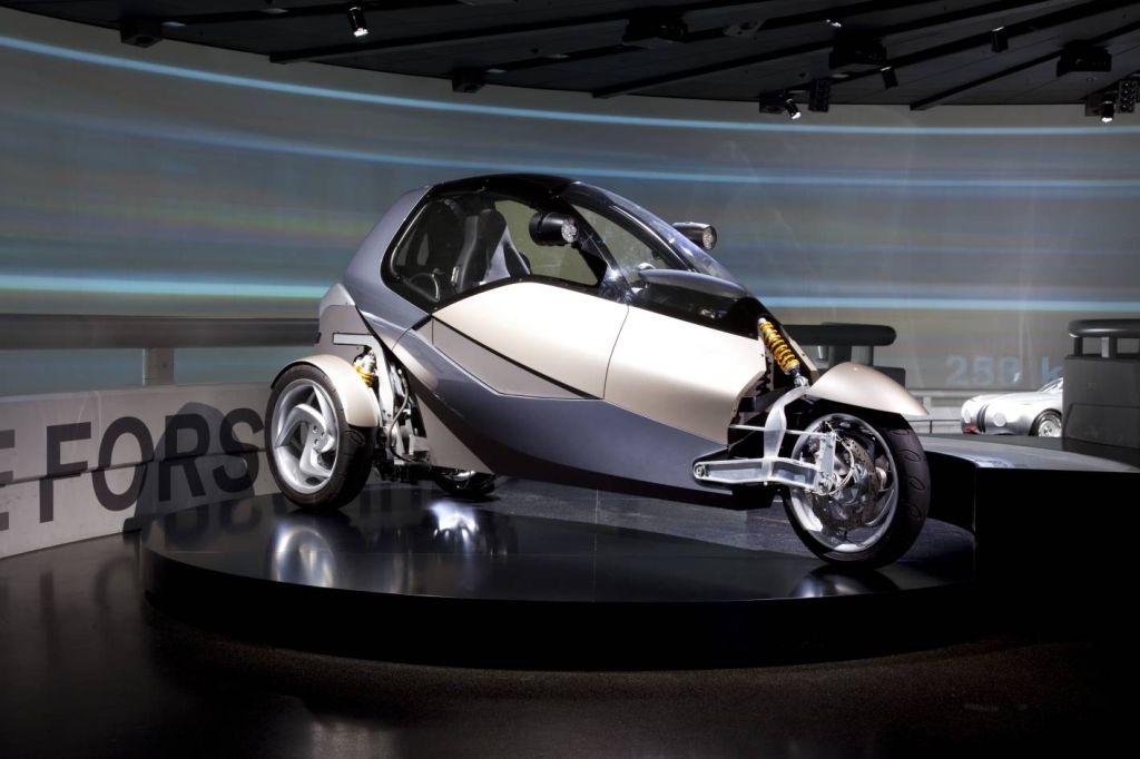 On a par with eco-friendliness and energy efficiency, a high level of passive safety was among the principal requirements in the brief. As in a Formula One racing car, the main frame – weighing just over 60 kg – constitutes the survival cell, while the front wheel and steering ensure a deformation path of some 35 centimetres to absorb sufficient energy in an impact. Thanks to special seat belts and a specially developed driver airbag, the research vehicle complied with the Euro NCAP crash test requirements for small cars at the time: even in a frontal collision at 56 km/h, the three-wheeled prototype offered a secure survival cell.