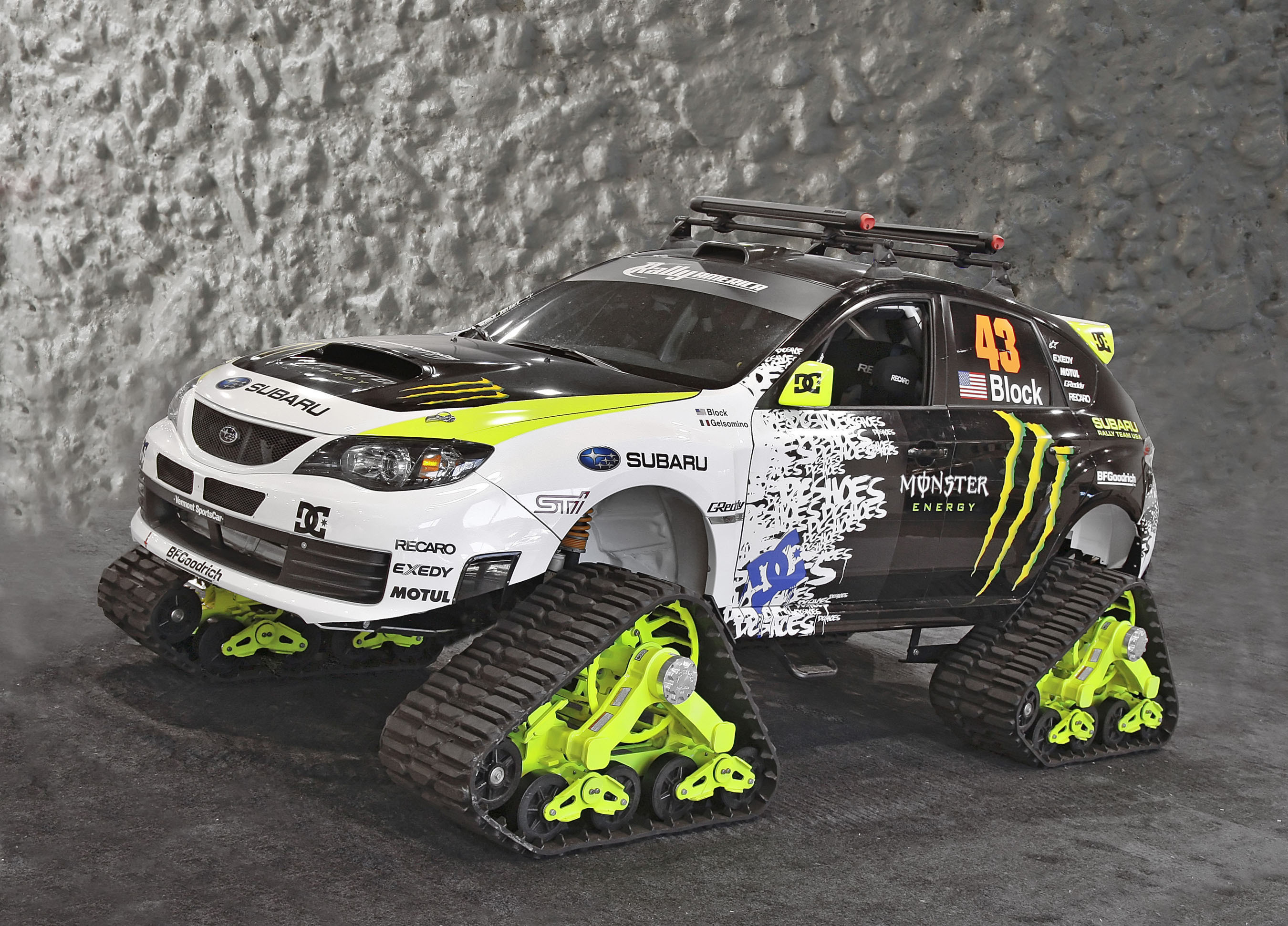 CHERRY HILL, NJ - November 3, 2009: The Subaru WRX STI, when equipped with proper tires, is capable of impressive all-weather performance. But when even snow tires are not enough, Subaru offers a solution - a 400-hp WRX STI equipped with a snow tracks system, as showcased at the 2009 Specialty Equipment Manufacturers Association (SEMA) Show at the Las Vegas Convention Center, Nov. 3-6.