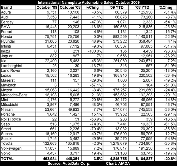 See below for a complete breakdown of October 2009 monthly and year-to-date sales by international nameplate.