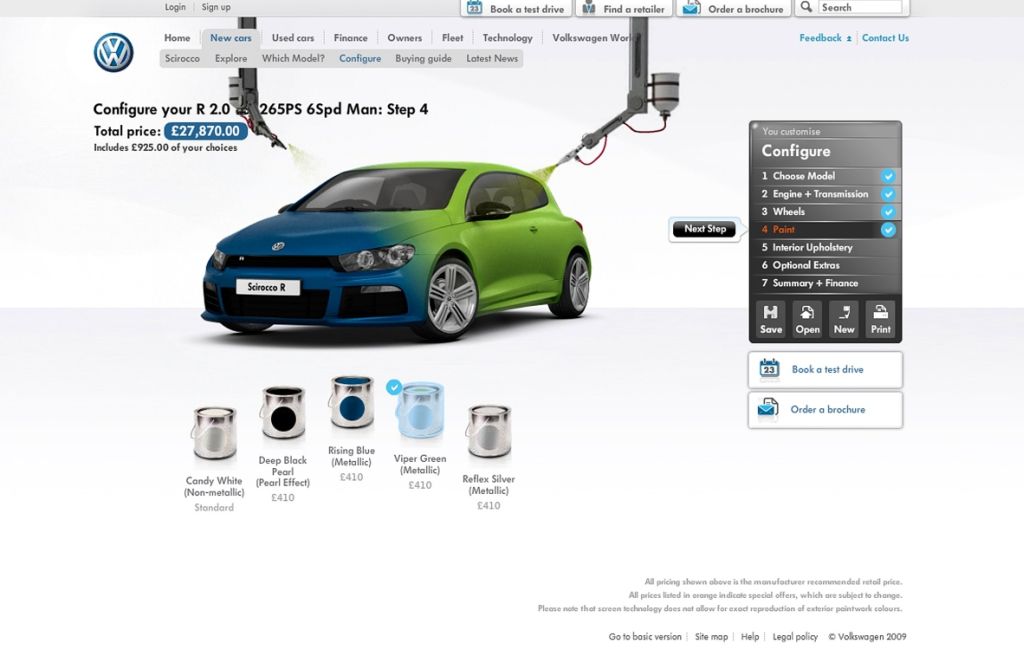 Awarded ‘Web Innovation of the Year’, the interactive Car Configurator facility offers users a life-like experience of sitting in and walking round each of the models in the Volkswagen range without having to leave the comfort of their own homes. Every option that can be specified on a new Volkswagen has been included on the site, so it gives visitors the chance to see first-hand how changing and including additional options will enhance the car of their choice.