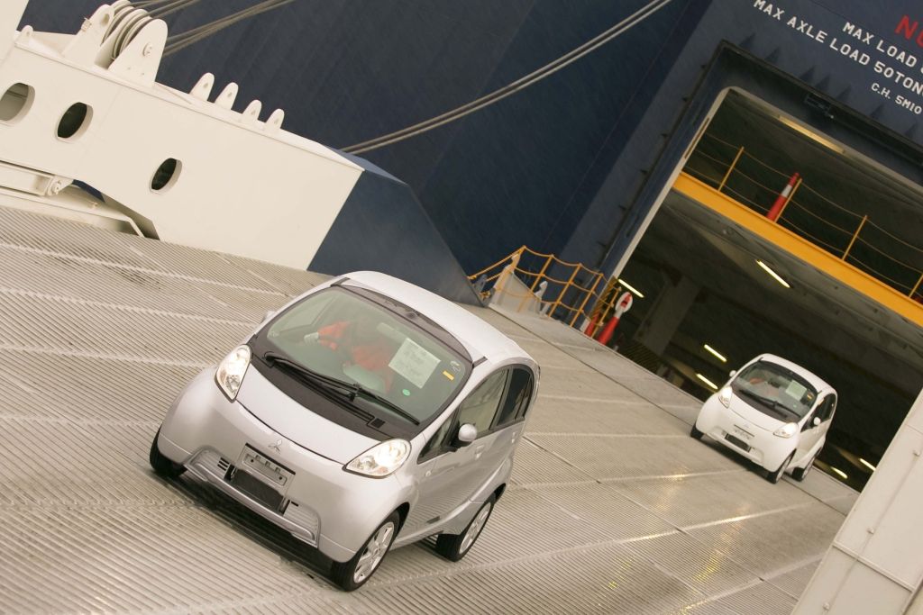 Mitsubishi i-MiEV’s arrive at Bristol’s Royal Portbury Docks.