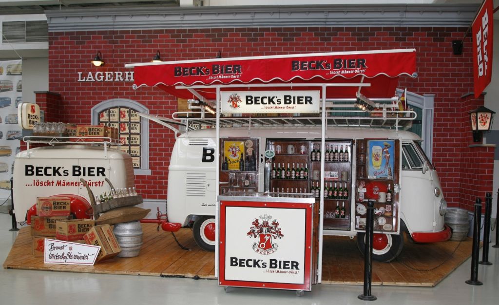 Also on display – and a very appealing attraction – is the so-called Beck’s Bus, a converted T1 with a built-in bar dispensing ice-cold beer.