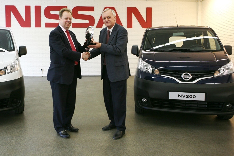 MAPLE CROSS, UNITED KINGDOM – December 7, 2009: Andy Palmer, Senior Vice President, Nissan Motor Co., Ltd, has accepted the International Van of the Year (IVoY) award for Nissan’s segment breaking NV200. The award was given by the IVoY Jury Chairman, Pieter Wieman during a ceremony held at Nissan’s Barcelona plant, where the NV200 is produced for Europe.