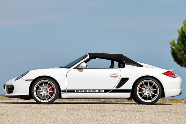 The combination of more horsepower, 176 lbs. less weight than the award-winning Boxster S, an all-new sport suspension that lowers the Boxster Spyder 20 mm, a lower center of gravity, a standard limited slip differential, and exclusive wheels provide the kind of driving dynamics that back up the unique look. Aluminum door skins and lightweight interior door panels from the 911 GT3 RS contribute to the weight reduction.