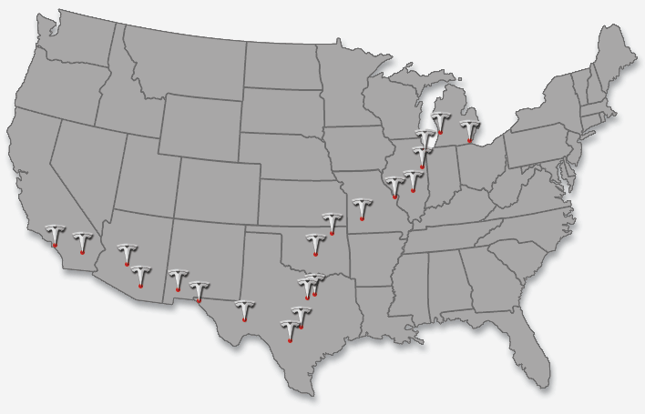 The entire road trip route is here: http://www.teslamotors.com/roadtrip/.