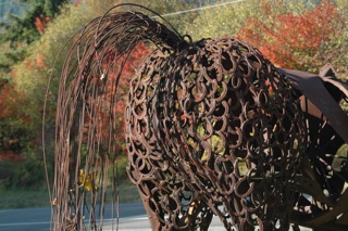 Amazing views of the mountain jump out at us all along the road traversing the south side of the park through Paradise where an informative visitors center describes this amazing geological feature. On the way out of the park, just east of Elbe on Highway 706, is one of the most unusual sculpture parks we’ve ever encountered. We remembered the place from our last trip as well and had to stop again. Most of the same pieces were on display - creatures both imaginary and representative are made out of metal, wood and any other material the artist, Dan Klennert, found or had lying around. One of my favorites is the horse’s ass made of horseshoes. This kind of art is known as bricolage.