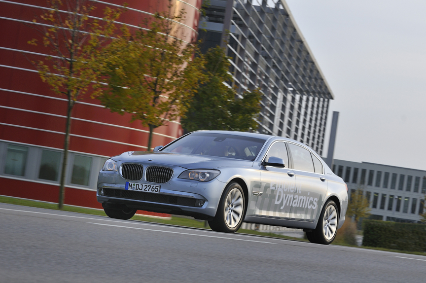 Precisely masterminded interaction of both power sources serves to optimise not only the supreme level of efficiency, but also the dynamic performance and motoring comfort offered by the BMW ActiveHybrid 7. Just one example is that the BMW ActiveHybrid 7 accelerates from a standstill to 100 km/h (62 mph) in a mere 4.9 seconds, while making do on average fuel consumption in the EU test cycle of 9.4 litres/100 kilometres (24.9 mpg US) and restricting CO2 emissions to 219 grams per kilometre.