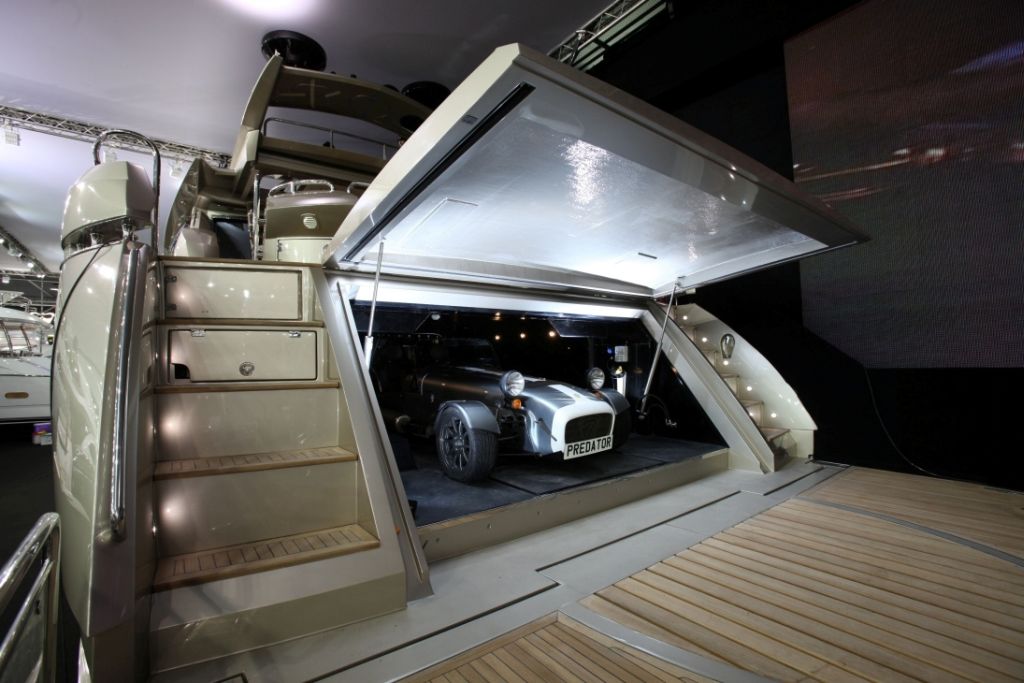 With the London International Boat Show 2010 (LIBS) due to commence on January 8, Sunseeker’s Predator 108 Special Edition is making its world debut and will do so with one of Caterham’s iconic Sevens stowed in its garage.