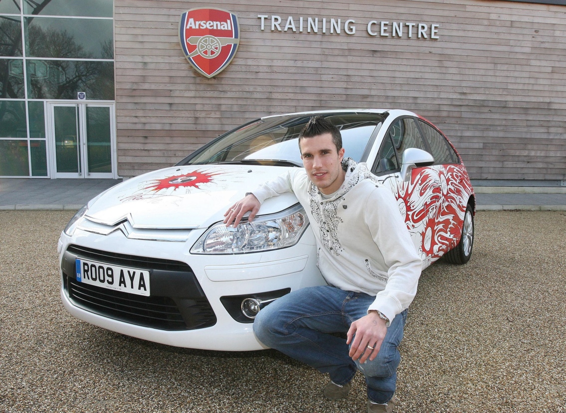 The unique 2009-registered Citroen C4 was styled by renowned cartoonist and satirist Gerald Scarfe and features images of modern Gunners heroes such as Arsene Wenger, Gael Clichy, Manuel Almunia and Robin Van Persie. The interior has also been styled with the Arsenal fan in mind, with bespoke stitching on the leather seats.